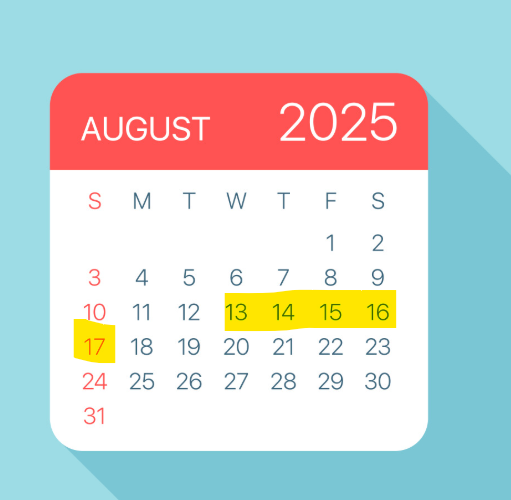Dates: Wednesday, 13th - Sunday, 17th August 2025